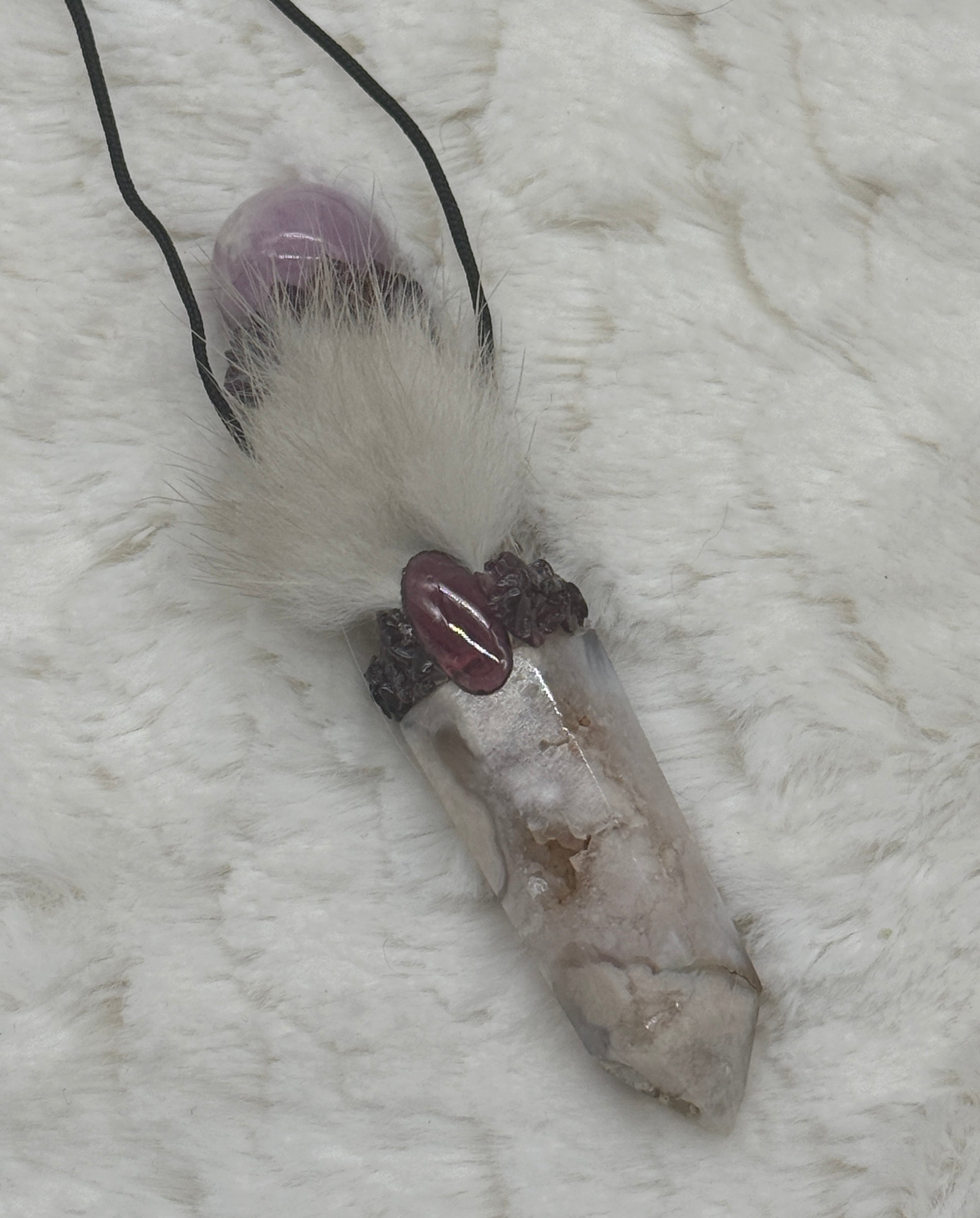 Flower Agate Point – Encourages self-growth, transformation, joy and a zest for life. Empowers you to reach your full protentional. Assists with releasing fears & self-doubt that are holding you back. Also aids in manifesting & nurturing your dreams. Helps with integrating the Divine Feminine nurturing, creating and growing energy. Fosters inner peace, self-worth, positive thinking and creativity.